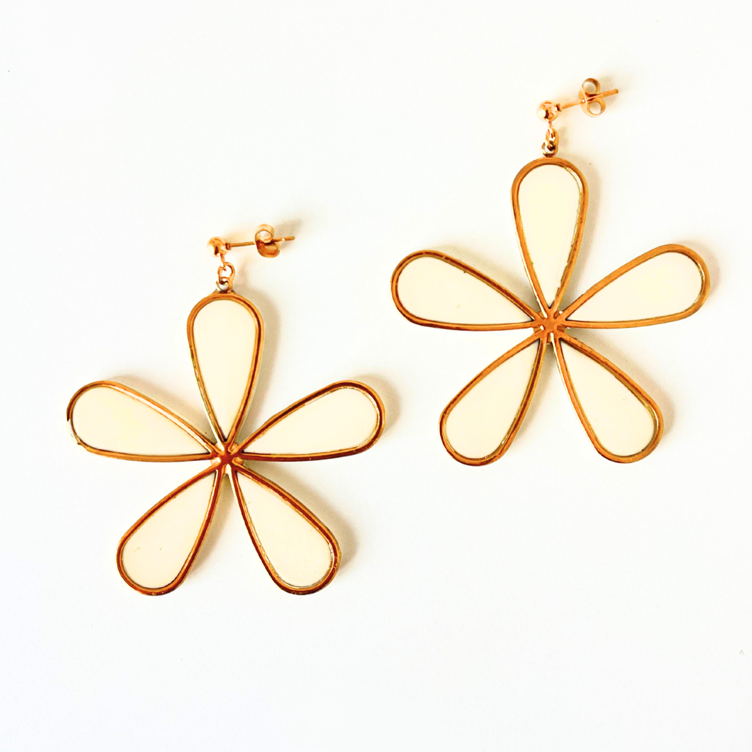 Ces boucles d'oreilles allient le charme artisanal de l'argile polymère enduite de résine à la durabilité de l'acier inoxydable . Leur motif floral, large et léger, illumine le visage et lui apporte une touche de gaieté, parfaites pour les mariages, les événements spéciaux ou les looks estivaux.