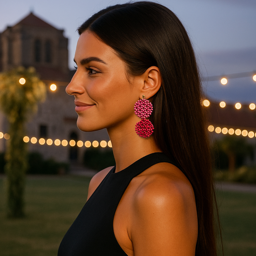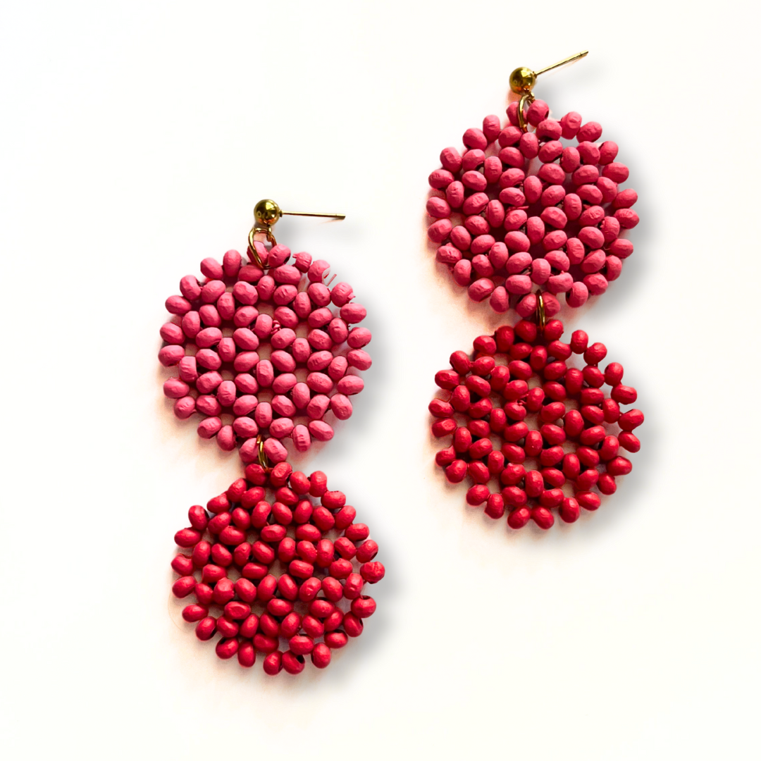 Les boucles d'oreilles Kalea sont un pur symbole de caractère et d'énergie. Leur design, composé de deux cercles superposés de perles de bois d'un rouge vif et frais, est parfait pour celles qui aiment se démarquer avec style. Elles sont idéales pour les jours où vous avez besoin d'une touche de couleur qui vous correspond.