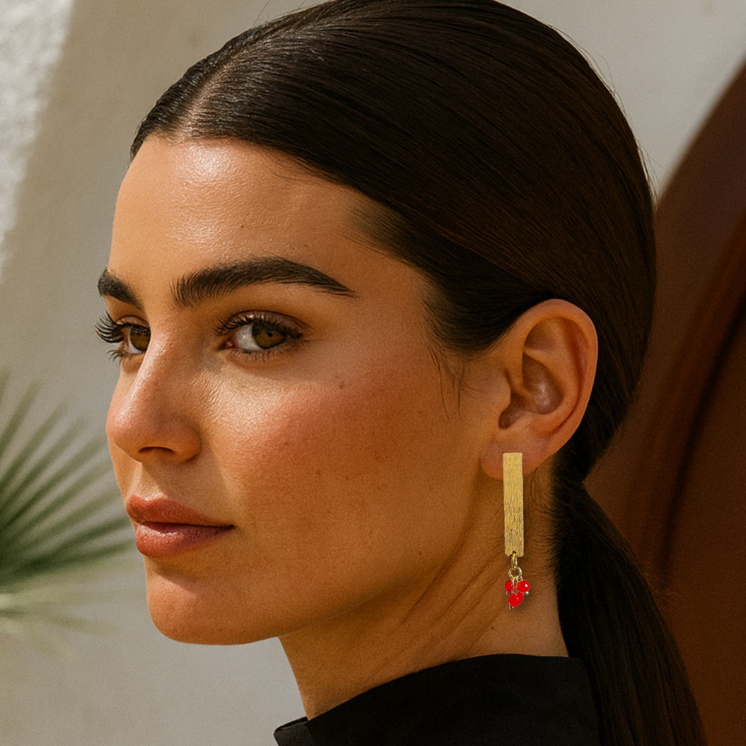 Les boucles d'oreilles Nara sont ce petit détail puissant qui fait toute la différence. Un design léger et minimaliste, rehaussé d'une touche de rouge vif, idéal pour celles qui recherchent une élégance naturelle. Parfaites pour les invités d'un mariage ou pour sublimer votre quotidien avec style. Les boucles d'oreilles Nara ne sont pas comme les autres : elles ont ce « jeu » indescriptible, mais qui vous fait réfléchir. Légères, dorées, avec cette touche de rouge indémodable. Vous évoquent-elles une fête foraine, des rires ou un mariage estival ? Exactement.