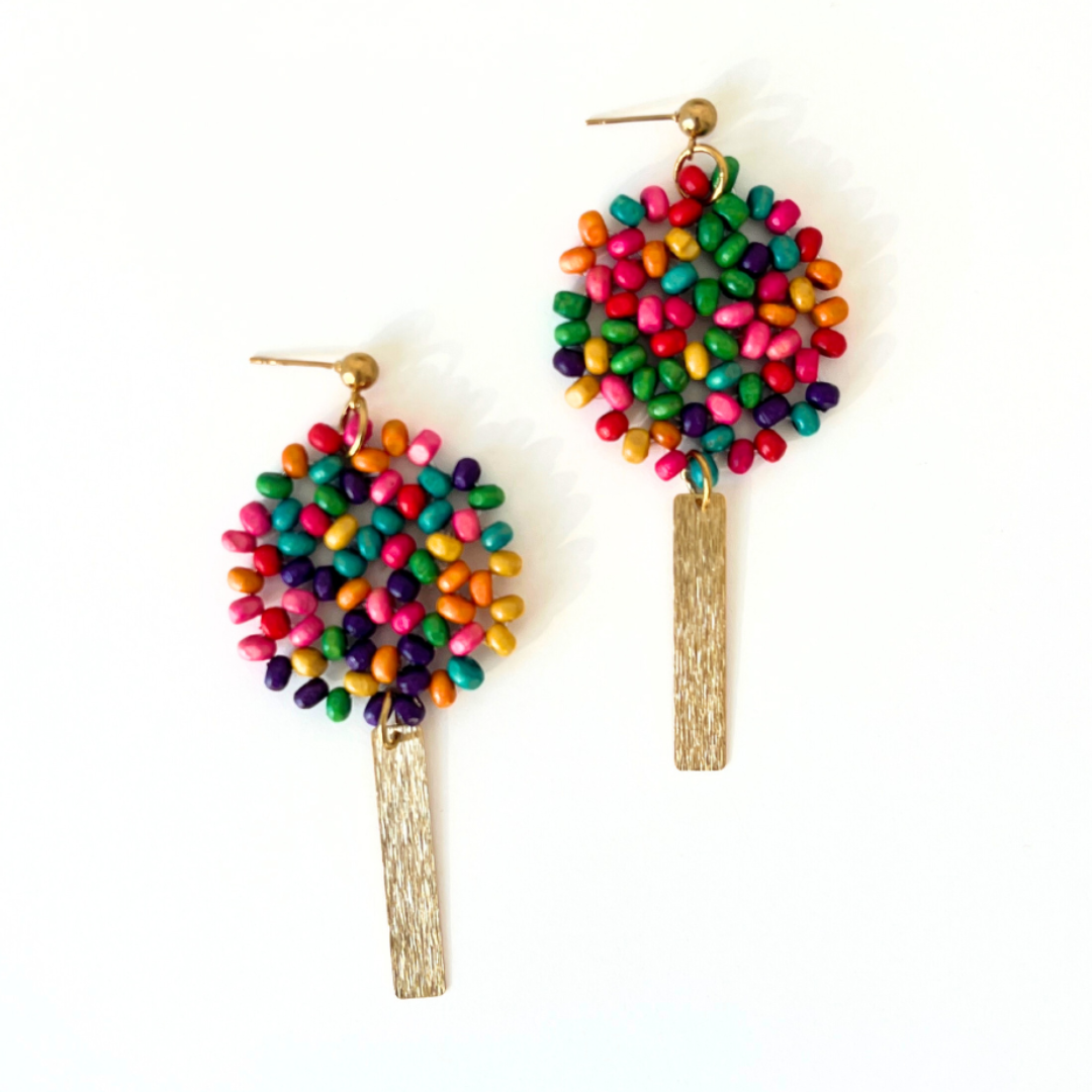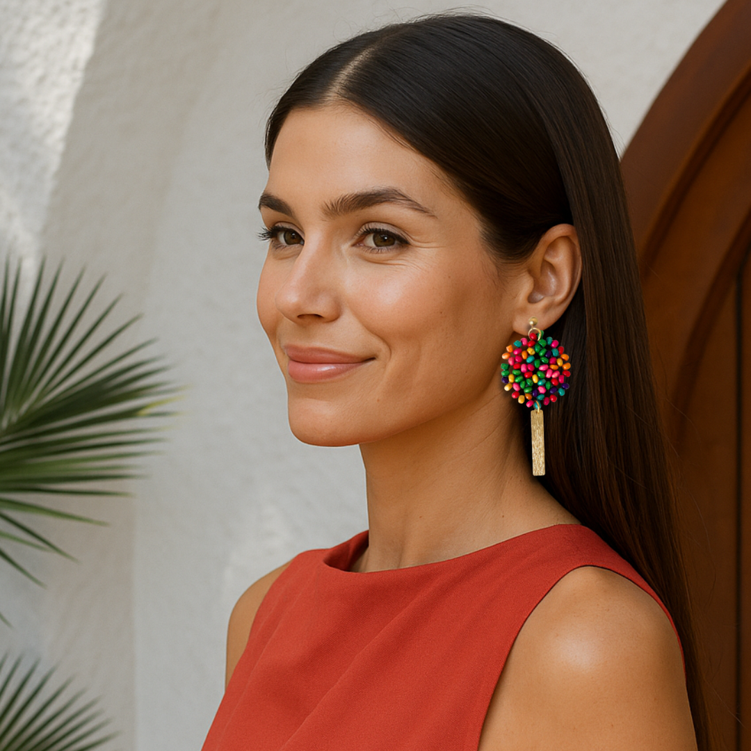 Découvrez les boucles d'oreilles Olivia , l'alliance parfaite de couleur, de légèreté et de style. Un design joyeux orné de perles de bois multicolores qui non seulement illumine votre visage, mais ajoute également une touche unique à n'importe quel look. Idéales pour vos invités, vos salons professionnels, vos événements spéciaux ou pour sublimer votre look quotidien avec un accessoire unique et artisanal.
