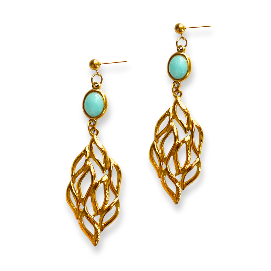 - Matériel: Breloques en pierre naturelle et acier inoxydable, boule d'oreille en acier inoxydable et grande pièce en acier inoxydable.